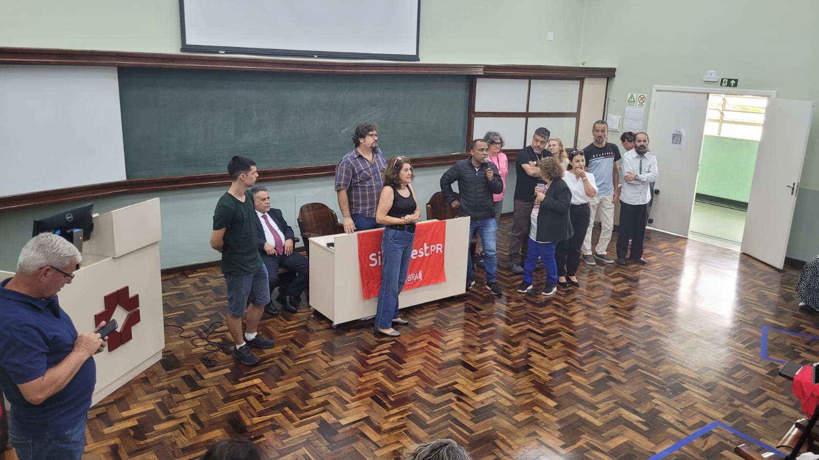 Os Técnico-Administrativos em Educação da base do SINDITEST-PR aprovaram, por unanimidade, a participação na Paralisação Nacional em defesa da Carreira e pelo Cumprimento Integral do Acordo de Greve. A decisão ocorreu durante a Assembleia Sindical realizada nesta segunda-feira, dia 19 de janeiro. Ao final da atividade, foram eleitos os delegados que representarão a categoria na Plenária da FASUBRA, nos dias 24 e 25 de janeiro, em Brasília.
