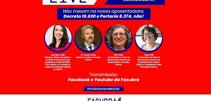 Fasubra promove amanhã (03) live “Não mexam na nossa aposentadoria. Decreto 10.620/21 e Portaria 8.374/21, não!”