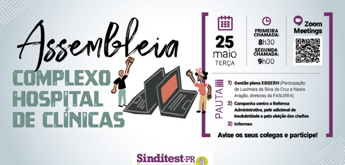 O Sinditest convoca os técnicos e técnicas da sua base lotados no Hospital de Clínicas…
