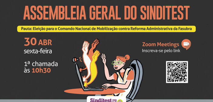 Atenção técnico e técnica da base do Sinditest, sexta-feira (30) é dia de Assembleia Ordinária…