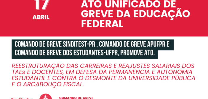 Os Comandos de Greve do Sinditest-PR, APUFPR e Estudantes da UFPR promoverão amanhã (17) um…