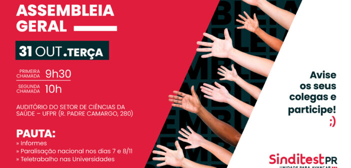 O Sinditest-PR convoca as técnicas e os técnicos administrativos em educação da sua base para…