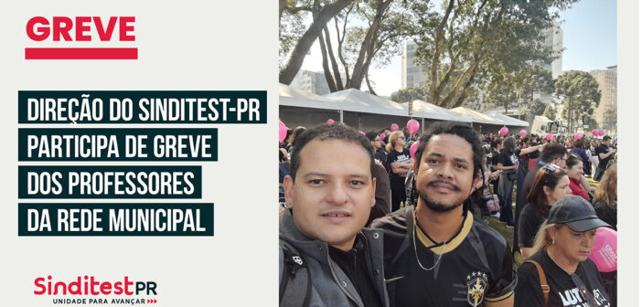 Os coordenadores do Sinditest-PR Diego Medeiros e Marcello Locatelli participaram hoje (17) da greve das…