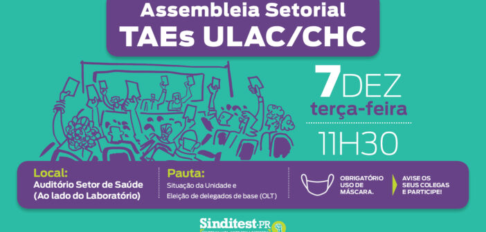 O Sinditest-PR convoca todas as técnicas e os técnicos lotados na Unidade de Laboratórios do…