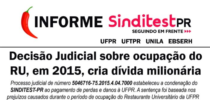 Processo judicial de número 5046716-75.2015.4.04.7000 estabeleceu a condenação do SINDITEST-PR ao pagamento de perdas e…