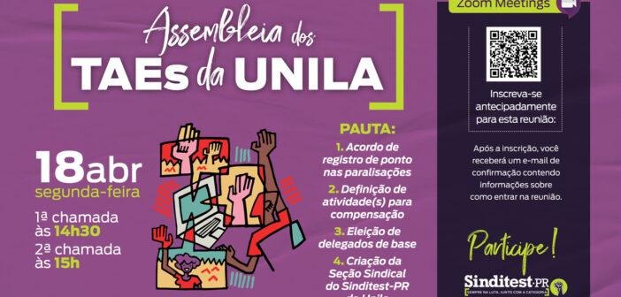 Sinditest-PR convoca TAEs da UNILA para Assembleia na próxima segunda-feira (18)