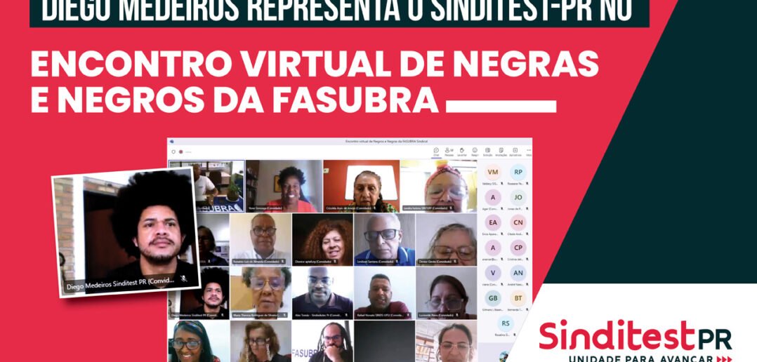 O Coordenador de Combate às Opressões Diego Medeiros representou o Sinditest-PR no Encontro Virtual de Negras e Negros promovido pela Fasubra. O evento, realizado na última quarta-feira (22), contou com a participação da deputada federal Dandara Tonantzin (PT-MG), que elucidou sobre o papel do Legislativo no combate ao racismo e ao preconceito racial e também da doutora Yone Maria Gonzaga, que abordou em sua palestra as experiências das servidoras e dos servidores públicos negros nas instituições federais de ensino.