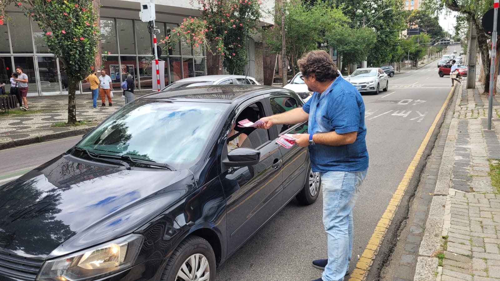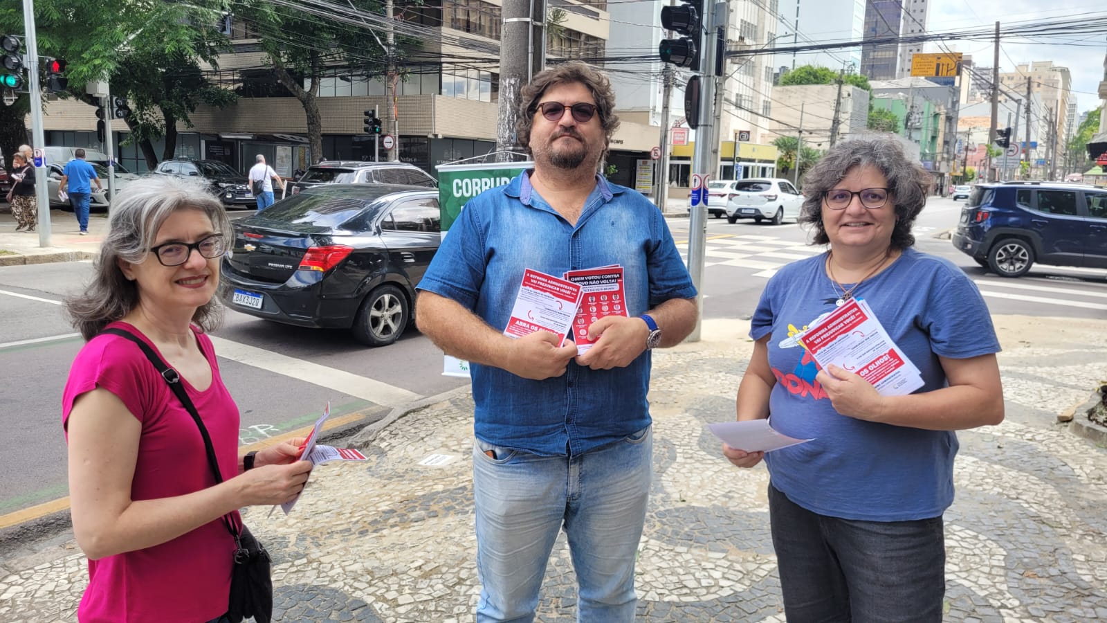 Contra a Reforma Administrativa e em Defesa da População – A ação de rua teve como objetivo principal dialogar diretamente com a sociedade sobre os perigos reais da Reforma Administrativa. Durante a panfletagem, membros da coordenação do Sindicato e base TAEs buscavam explicar aos pedestres e motoristas que a reforma não se trata de uma modernização, mas sim de um projeto articulado para o desmonte da categoria do servidor público.