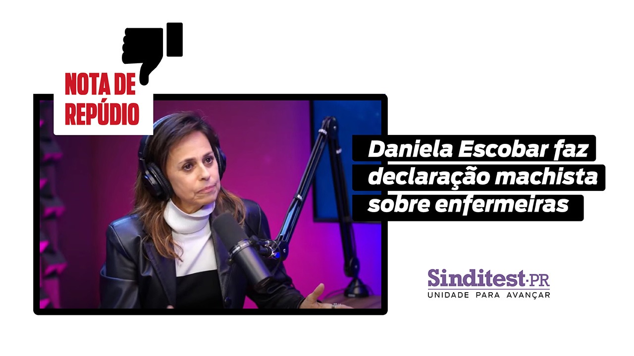 O Sinditest-PR repudia a declaração feita pela atriz Daniela Escobar, durante participação em um podcast. Durante a entrevista, a atriz comentou sobre a aparência de enfermeiras, as acusando de irem arrumadas ao trabalho para “catar médico”.