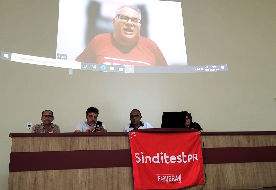 A Assembleia foi conduzida Coordenador Geral do SINDITEST-PR, Antonio Neris, acompanhado dos coodenadores Antonio Carneiro (Administração e Finanças), Débora Rodrigues (Organização por Local de Trabalho) e o servidor Janier Zeferino. Direto de Brasília, Marcia Messias, coodenadora Saúde do Trabalhador, que participa do Comando Nacional de Greve.