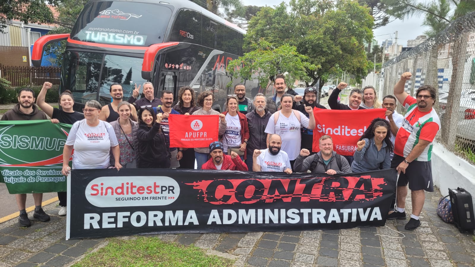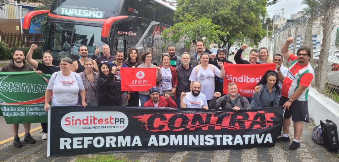 Na terça-feira (28/11), o SINDITEST-PR foi em caravana para Brasília com dirigentes e filiados para participar da Marcha Nacional do Serviço Público contra a reforma administrativa junto com as centrais sindicais, sindicatos e organizações sociais. A mobilização reuniu milhares de servidores públicos de todo o país em protesto contra o texto apresentado por três deputados do centrão e da extrema direita, que conseguiu os 171 votos necessários para ser admitida na pauta da câmara e recebeu o número PEC 38/2025, em substituição à PEC 32/2020, que tinha o mesmo teor, embora a atual seja ainda mais destrutiva que a anterior. Essa ação na capital federal se soma à atuação firme do SINDITEST-PR junto à Fórum em Defesa do Serviço Público do Paraná e em todos os espaços constituídos para o fortalecimento desta luta.