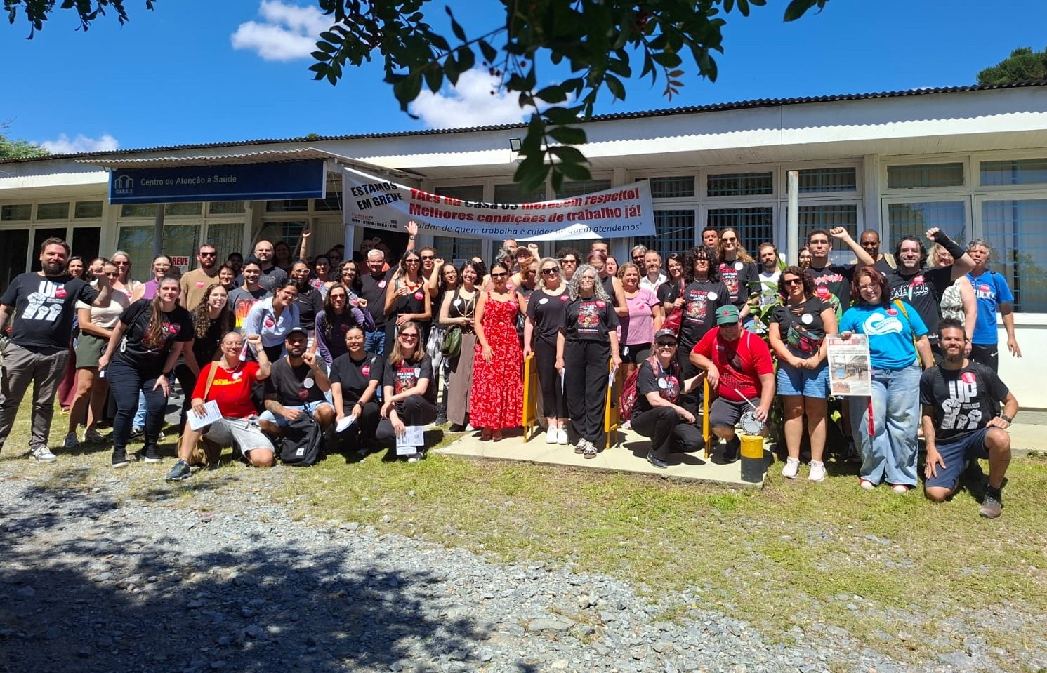 Logo após o encerramento da Assembleia Local de Greve, os servidores da UFPR realizaram um Ato de apoio e solidariedade aos trabalhadores da Casa 3 (CAS/PROGEPE). A manifestação teve como objetivo central cobrar a realocação imediata e urgente do serviço para um local com condições adequadas dentro do Centro Politécnico.