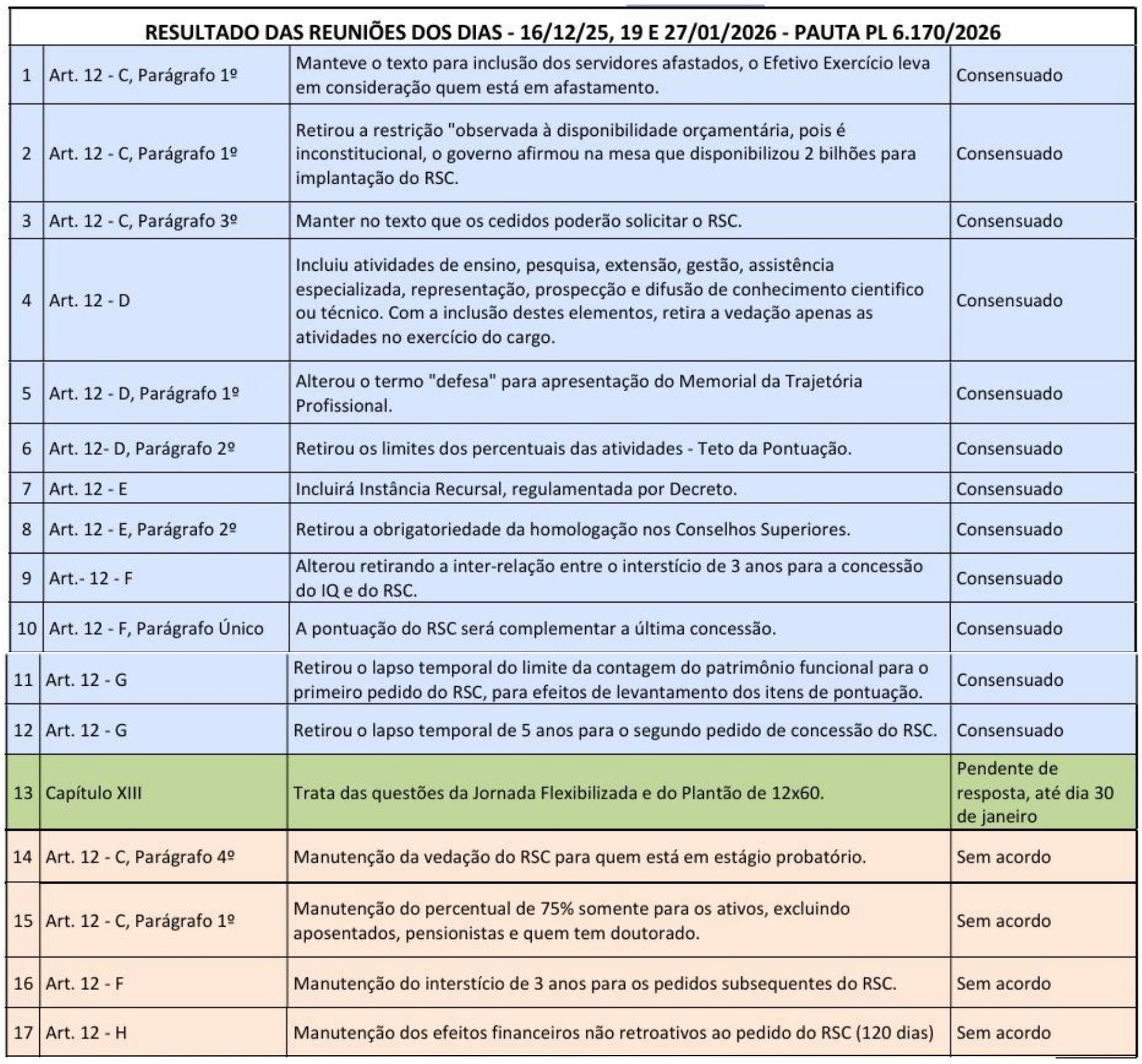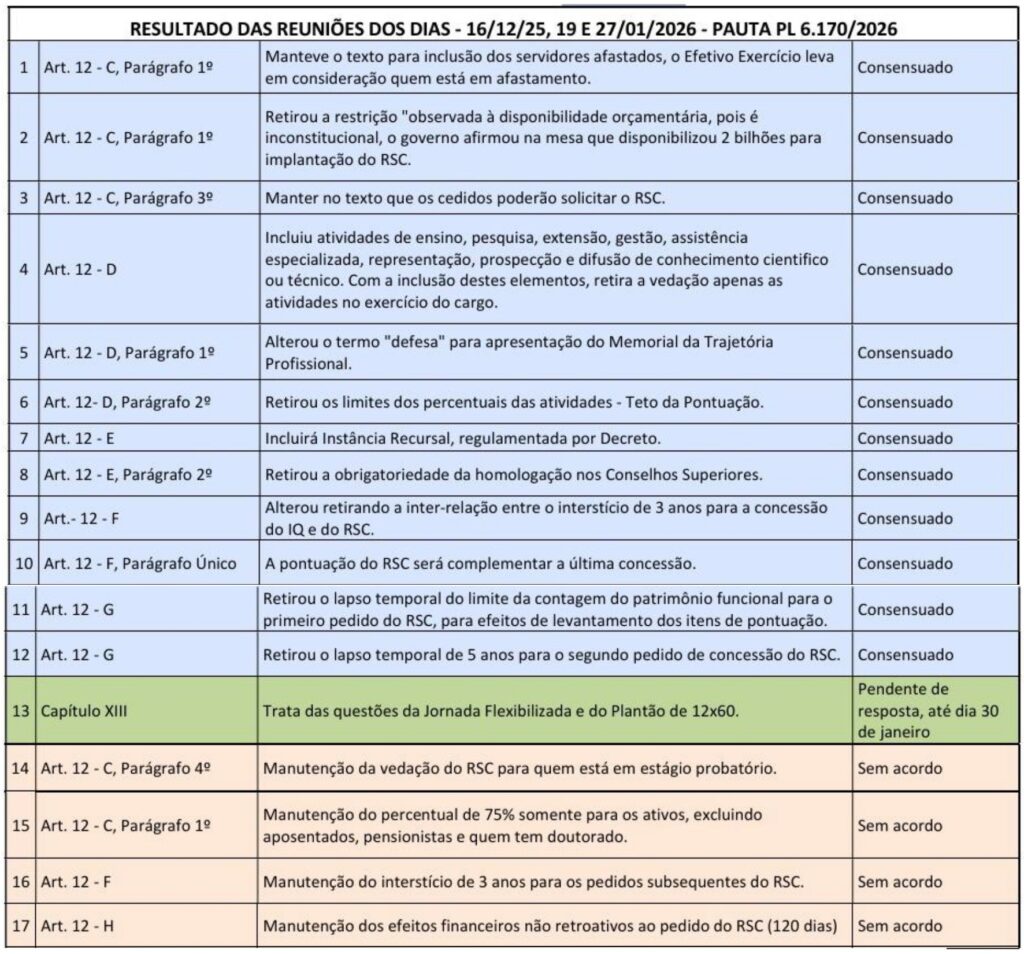 Confira a tabela da FASUBRA Sindical com pontos em que houve recuo do governo e aqueles que seguem sem acordo: