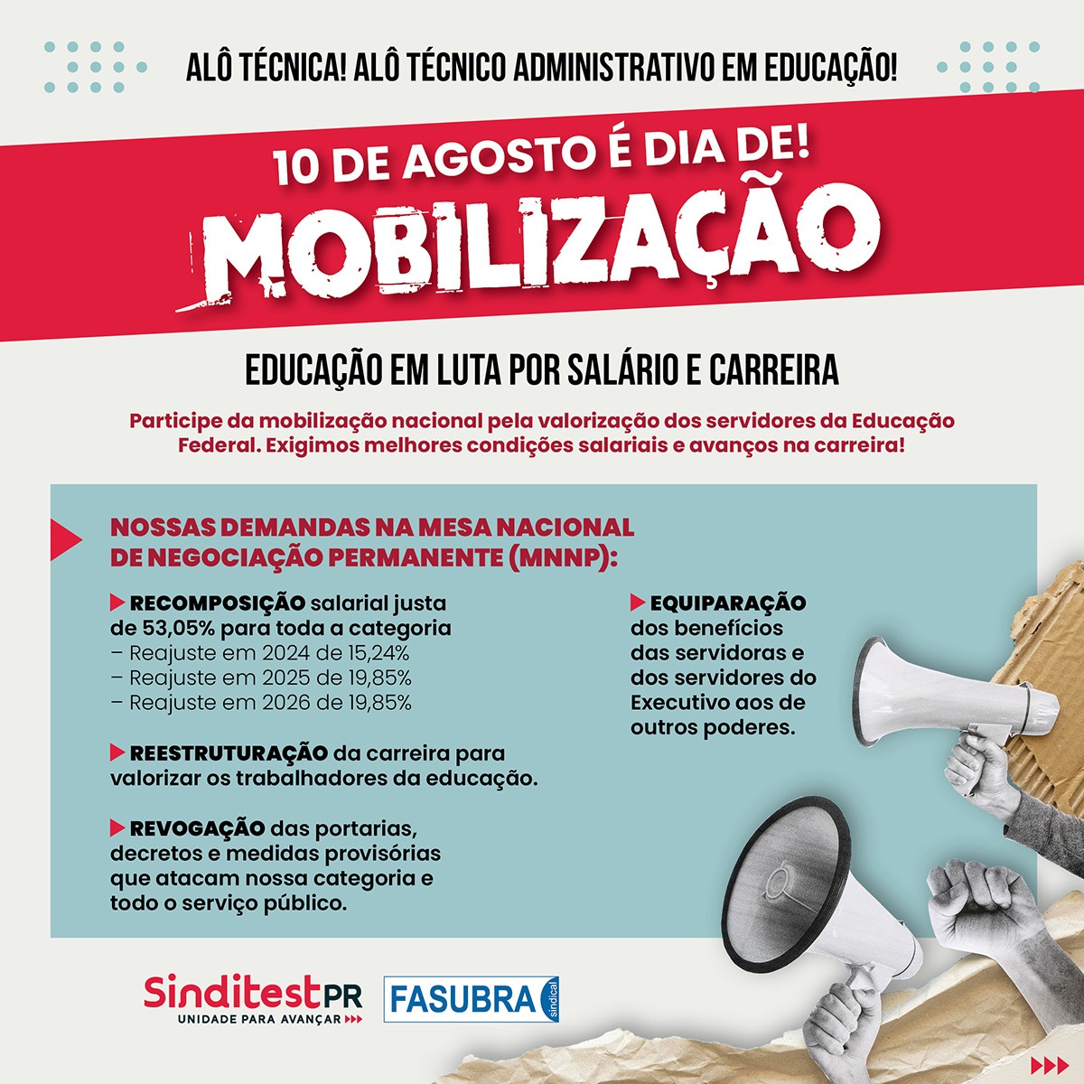 Confira as pautas das técnicas e técnicos na mesa de negociação!