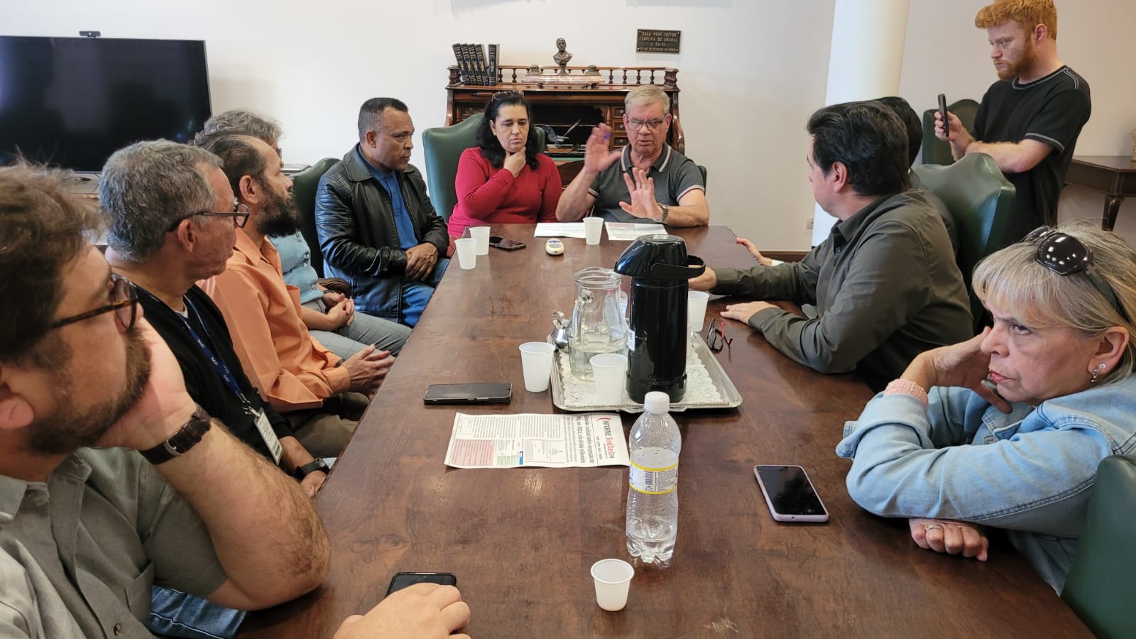 Participaram da reunião os Coordenadores Geral Antônio Neris de Souza e Wilson Venzel Messias; Ivandenir Pereira, Coordenador de de Assuntos Jurídicos e Relações de Trabalho; Antônio Carlos Carneiro, Coordenador de Formação Política e Sindical; Débora Cristina Rodrigues e Aguinaldo Gonçalves da Cruz, Coordenadores de Organização por Local de Trabalho; Luisa Fanes, Coordenadora de Aposentados, Aposentadas e Pensionistas; e Sueli Wolf, Delegada de Base do Sinditest-PR.