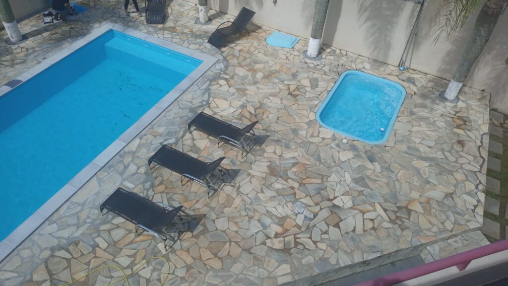 O investimento foi abrangente e focado no seu bem-estar, com o objetivo de oferecer a melhor estadia possível. Os quartos estão mais agradáveis com novos pisos e pintura interna refeita, garantindo um descanso merecido em um ambiente novinho. Trocamos a piscina por uma moderna e acessível, com ampliação das áreas de convivência para que você tenha mais espaço para relaxar, se divertir e interagir.