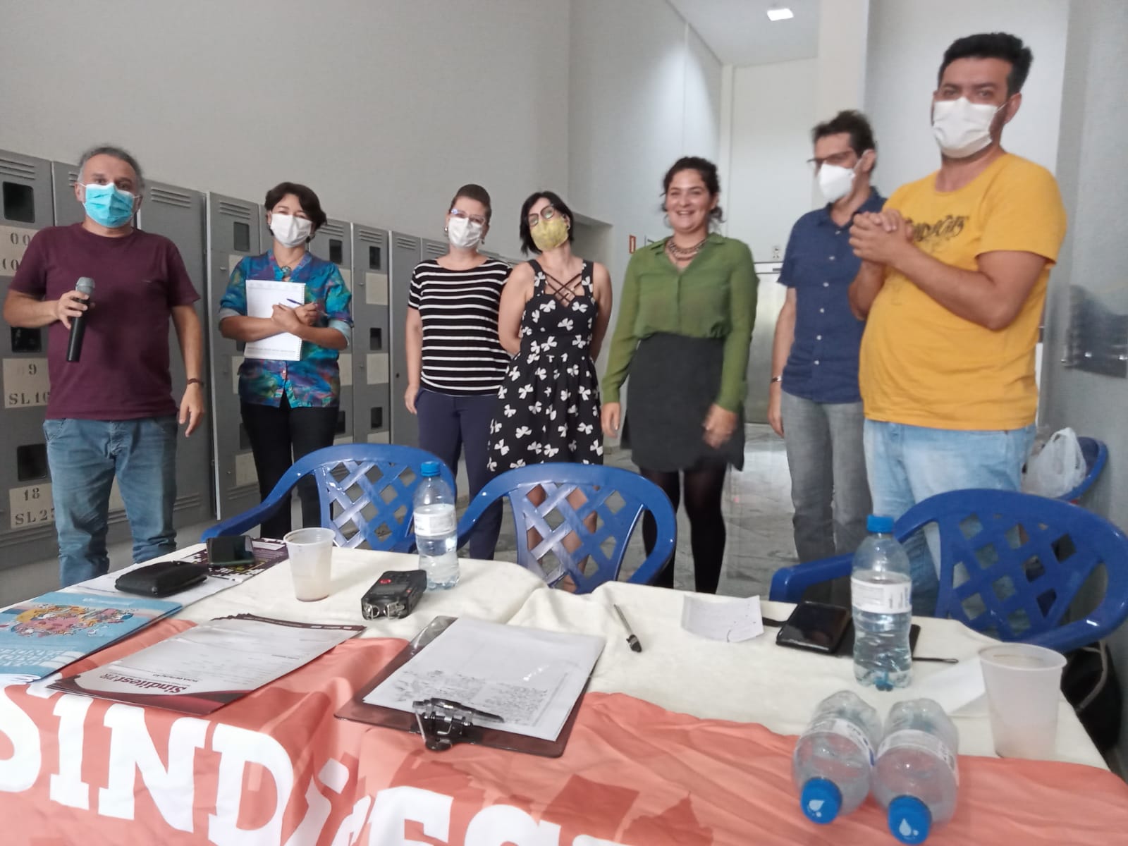 Técnicas e técnicos administrativos em educação lotados na Unila participaram ontem (07), Dia Mundial da Saúde, de uma assembleia local convocada pelo Sinditest-PR. Em pauta, o debate sobre a conjuntura nacional para a recomposição salarial de 19,99% e também a discussão sobre as prioridades dos TAEs da Universidade. Na ocasião, foram apresentadas e aprovadas as reivindicações da categoria à Reitoria – uma comissão de negociação, específica para esse fim, também foi eleita pelas trabalhadoras e trabalhadores. Compõem a representação Robson Eduardo Gibim, Regiane Tonatto, Sandra Regina Rodrigues Bolwerk, André Macedo, Diógenes Alencar Bolwerk, Michele Dacas e Liciani Rolling, além dos dirigentes sindicais Evandro Castagna e Warner Lucas.