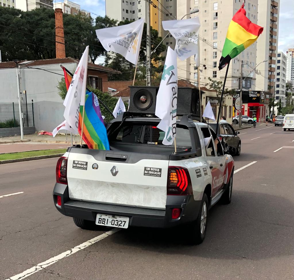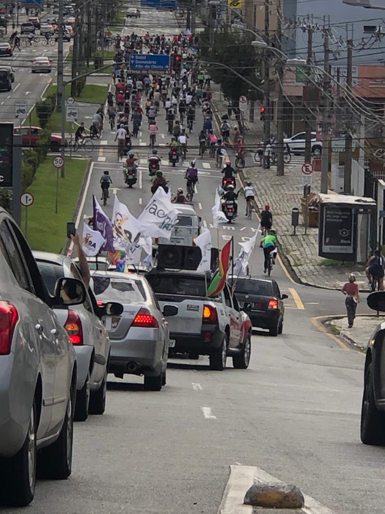 Técnicas e técnicos administrativos da base do Sinditest participaram, neste domingo (31), das diversas manifestações que ocorreram em todo o país a favor da vacina, da manutenção e ampliação do auxílio emergencial, dos empregos, e contra o governo Jair Bolsonaro. No Paraná, nosso sindicato esteve entre as entidades mais atuantes, participando da organização das carreatas e bicicletadas em diversas cidades. Em Curitiba, o evento foi considerado um grande sucesso, com a participação massiva dos TAEs da categoria, que se expressaram por meio de faixas e bandeiras. Mais de mil carros e centenas de ciclistas aderiram ao protesto pacífico, que movimentou as ruas do centro. Não foram registrados incidentes durante o trajeto. Apucarana, Toledo, Guarapuava, Cascavel, Londrina e Foz do Iguaçu também tiveram atos semelhantes.