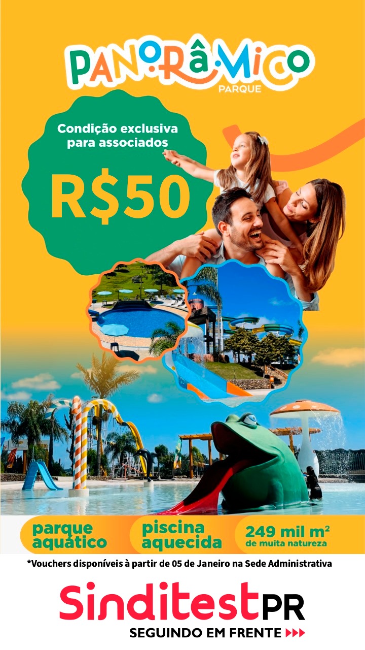 A parceria entre o Sinditest-PR e o Parque Panorâmico está renovada para garantir a diversão da sua família nesta temporada. Aproveite toda a estrutura de um dos melhores centros de lazer da região com um valor exclusivo para sindicalizados.