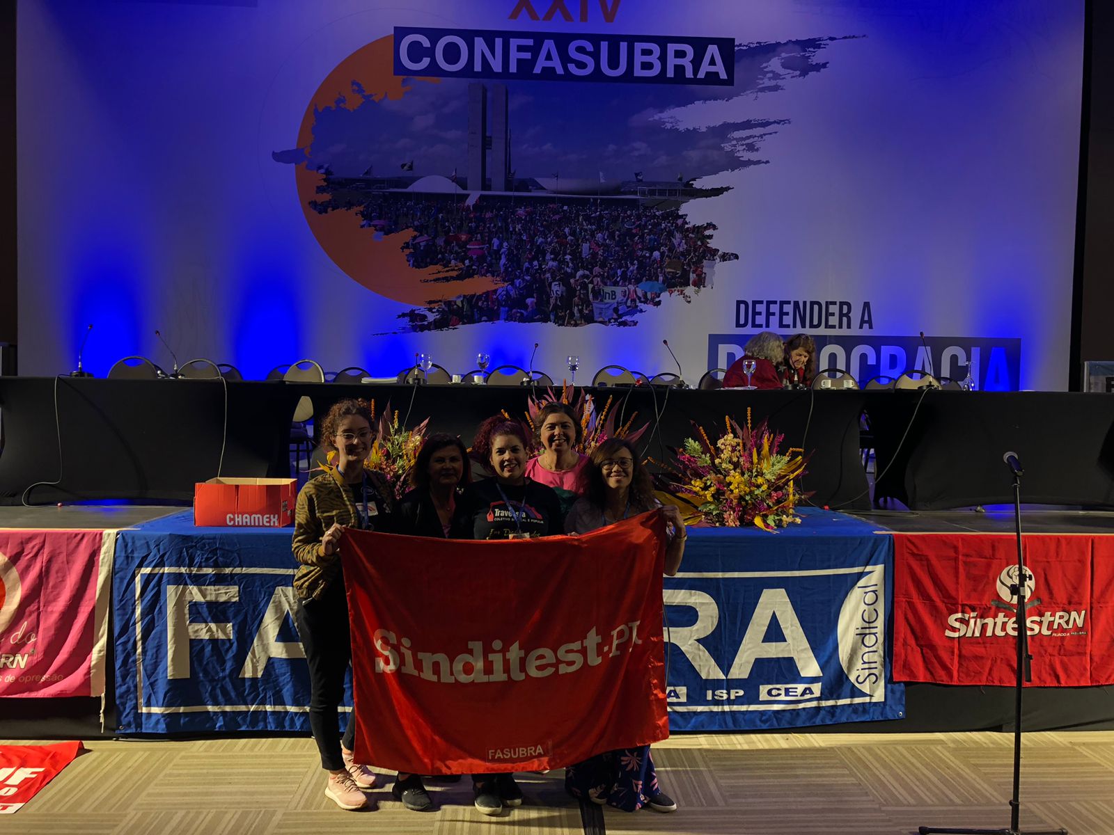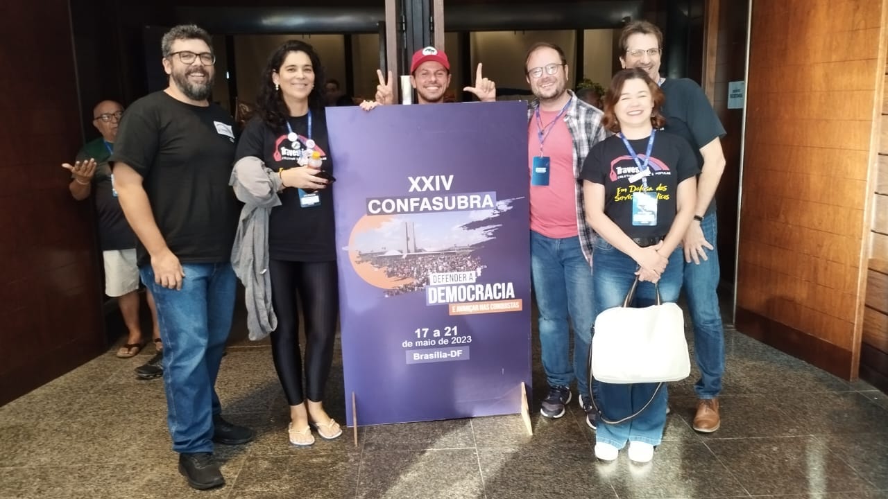 Delegados e delegadas do Sinditest-PR, eleitos democraticamente pela categoria, participaram, na última semana, do XXIV CONFASUBRA. Durante cinco dias, de 17 a 21 de maio, 43 representantes das técnicas e dos técnicos administrativos em educação das bases do Sindicato discutiram em Brasília temas como conjuntura, carreira, hospitais universitários, além de políticas específicas para aposentadas e aposentados, entre outras pautas relevantes. O evento, considerado o maior e o mais importante para as servidoras e servidores TAEs, reuniu 1043 participantes de 49 entidades de base de diversas instituições federais públicas de ensino.